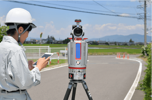 河川、道路、上⽔道、下⽔道、森林などにおける測量・調査・管理などを⾏う仕事です。最新測量機器を駆使し、道路やダム建設のための設計図書作成の礎となる現況測量を実施します。また公共事業に必要な⽤地取得にかかる⼟地境界の確定、⾯積算出等を⾏います。